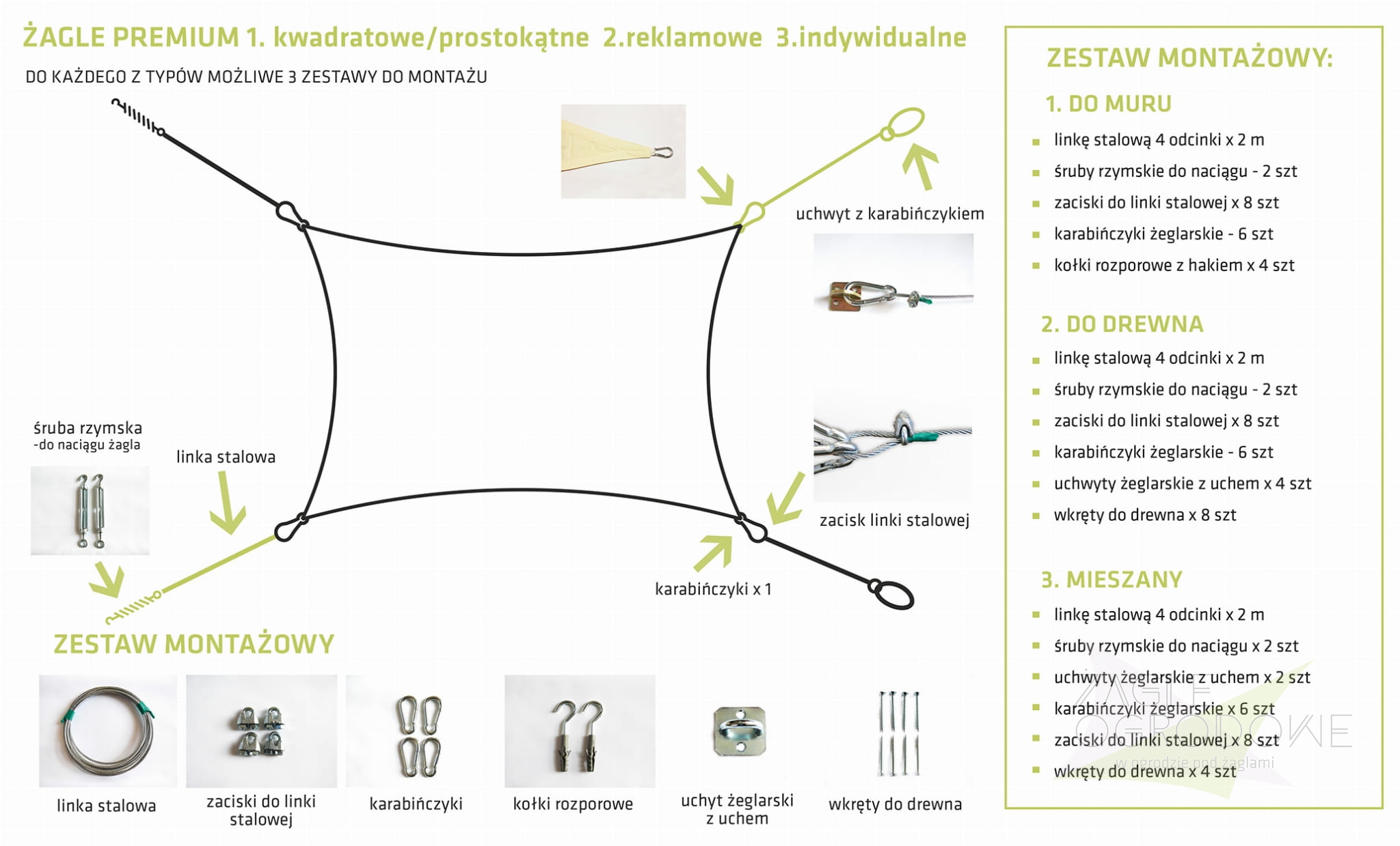 Full professional assembly kits can be found in the section ‘installation of the sun shade sails’: