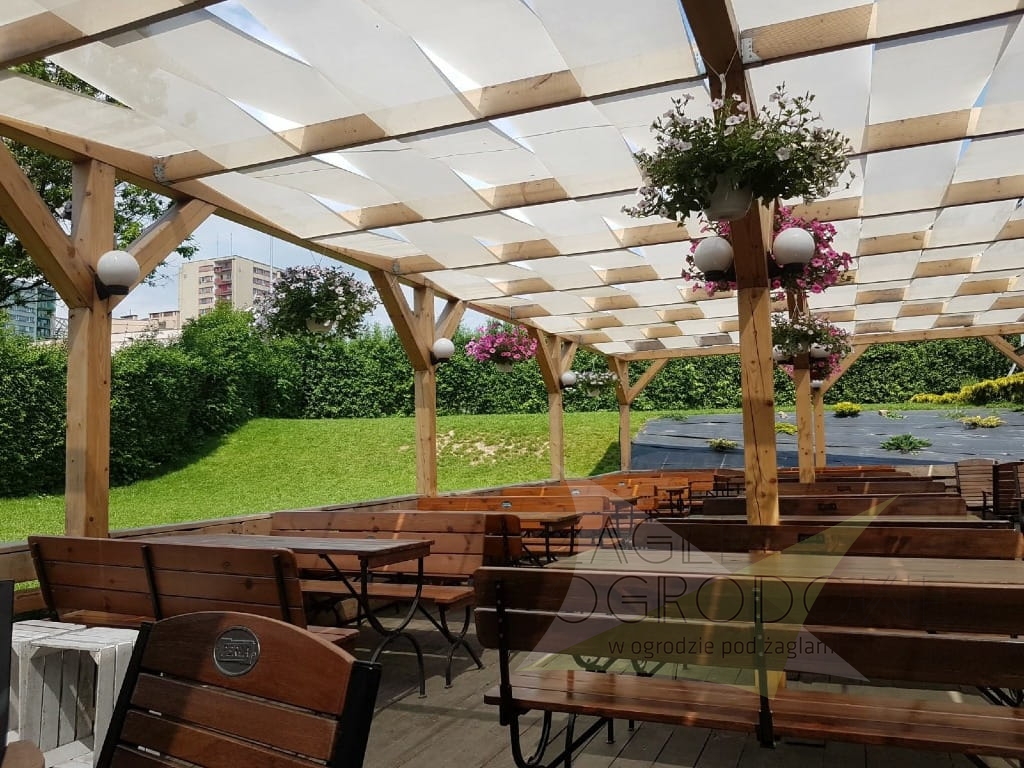 The product is flame-retardant (B1 certified), resistant to UV radiation, wind, moisture, and frost. It can be cleaned with a sponge or pressure washer. Suitable for year-round use. Eyelets on the edges allow for easy installation using mounting accessories.