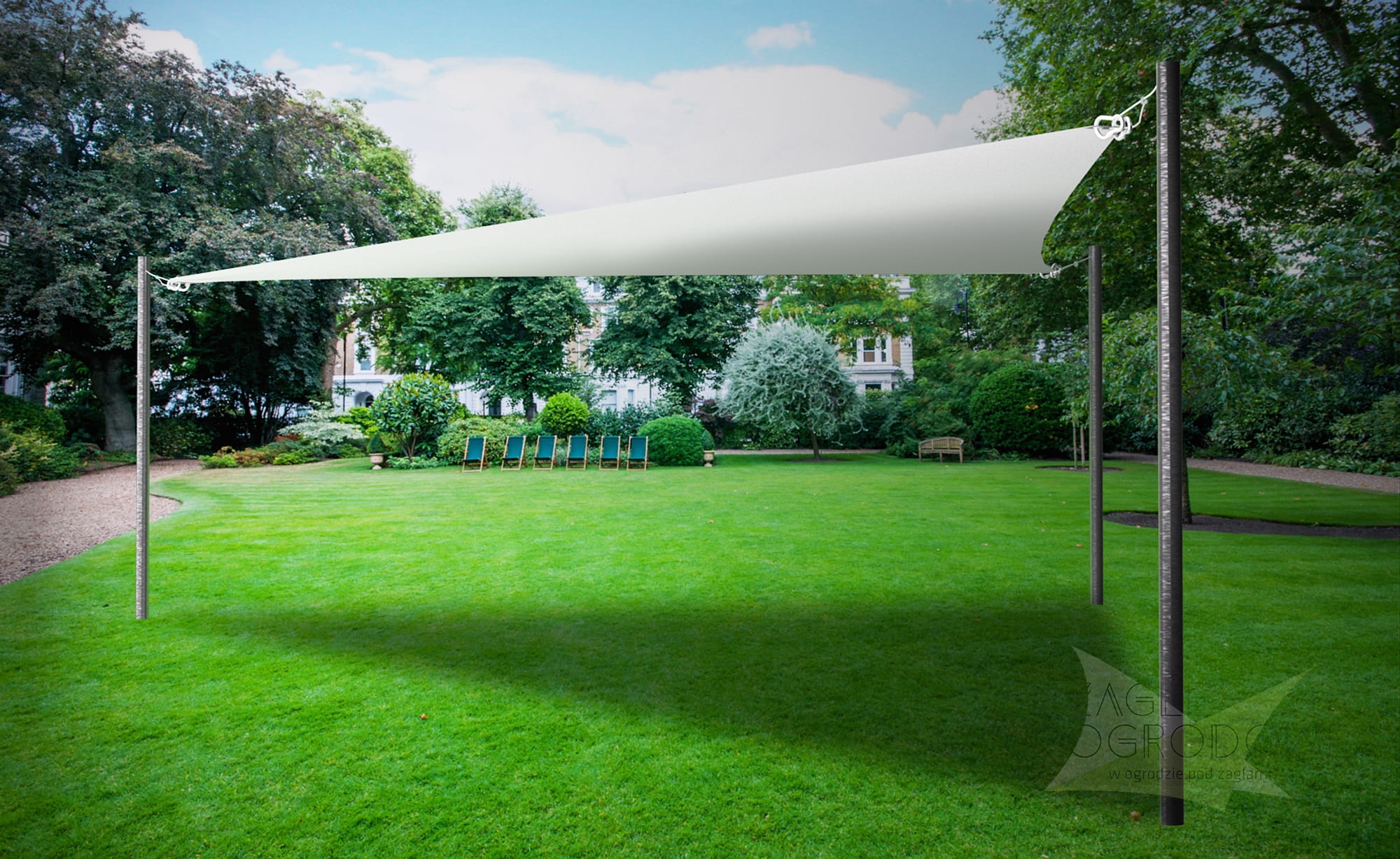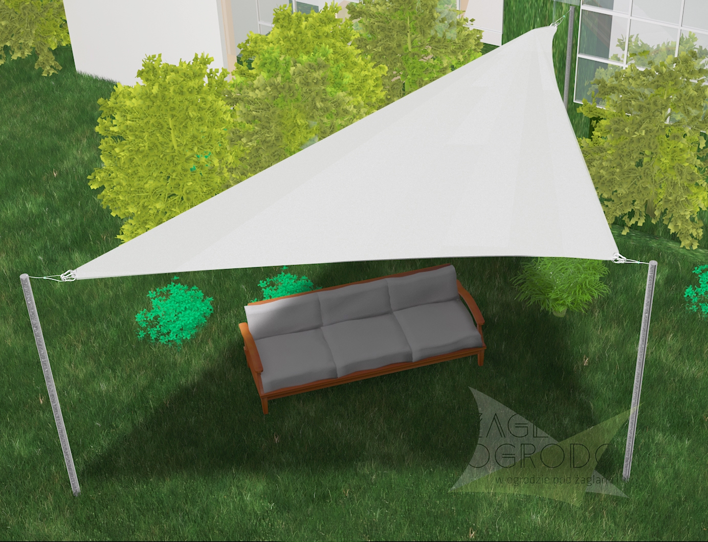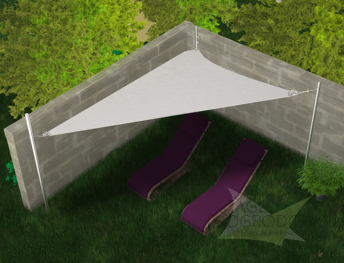 - decoratieve zonwering door meerdere driehoekige doeken boven elkaar te plaatsen,