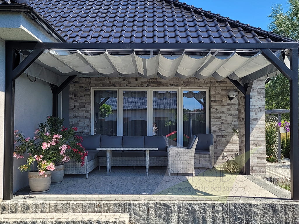 - voorzien van een praktisch schuifsysteem – pas de schaduw aan de weersomstandigheden aan,