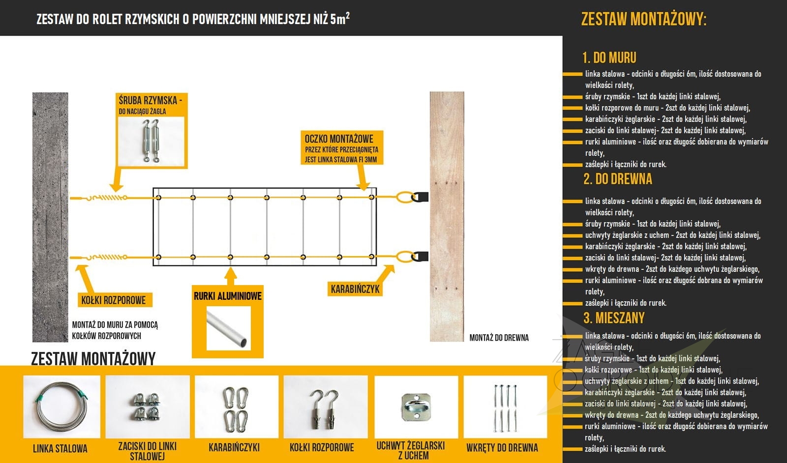 Let op: De aluminium buizen maken deel uit van de montageset en zijn niet inbegrepen bij de roleta zelf.
