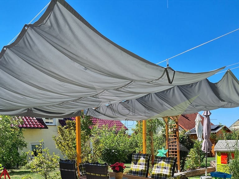 Bij het inschuiven ontstaan er decoratieve plooien, wat het zeil een zachte en esthetische uitstraling geeft wanneer het geopend is.