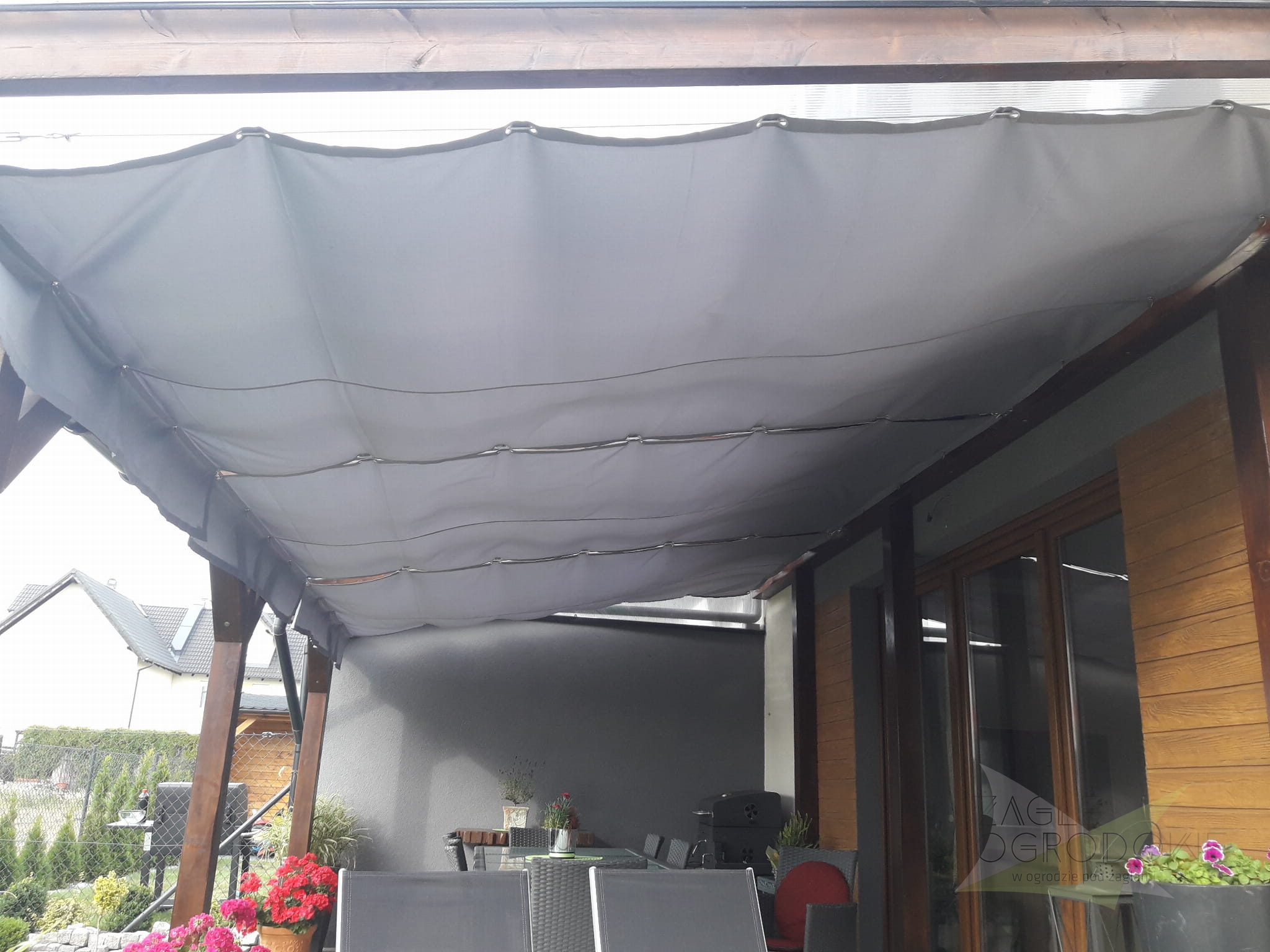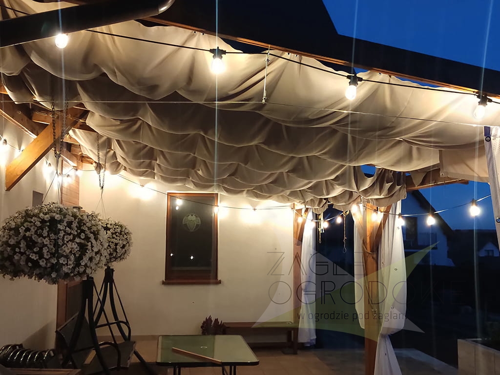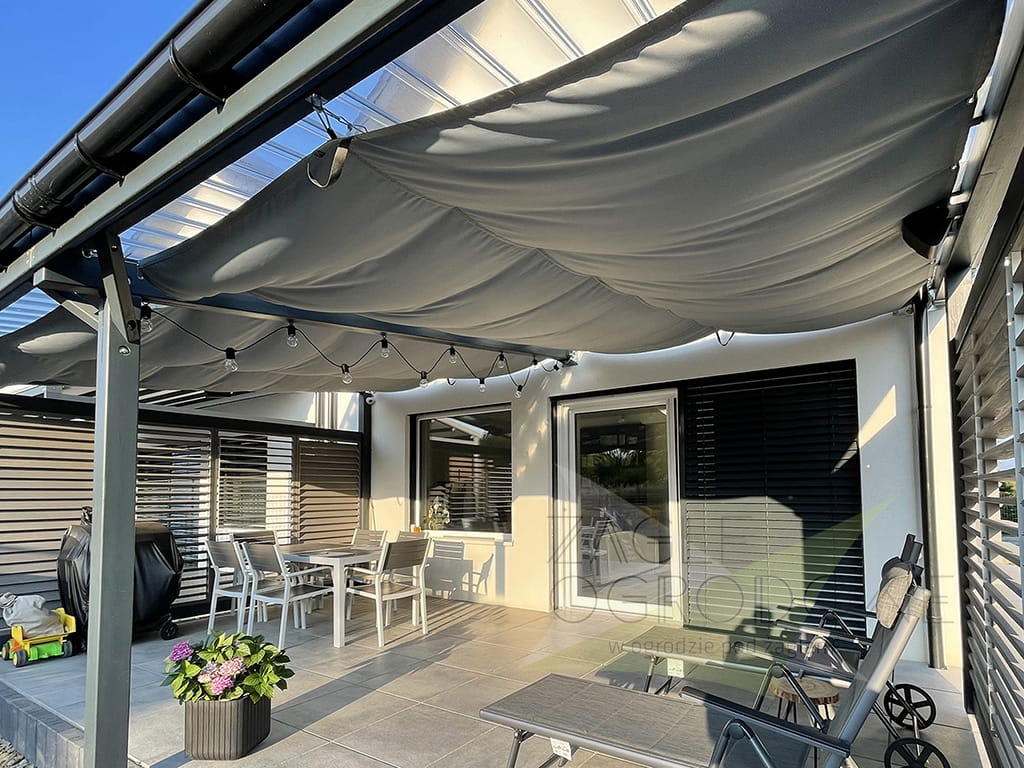 Bij het inschuiven ontstaan er decoratieve plooien, wat het zeil een zachte en esthetische uitstraling geeft wanneer het geopend is.