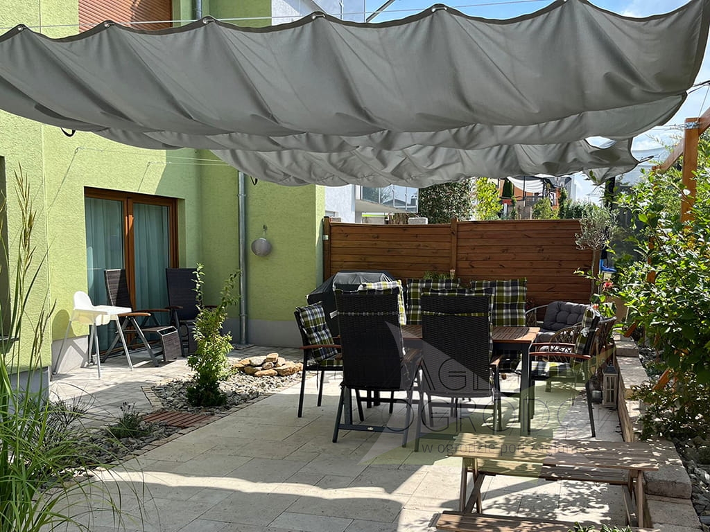 Bij het inschuiven ontstaan er decoratieve plooien, wat het zeil een zachte en esthetische uitstraling geeft wanneer het geopend is.