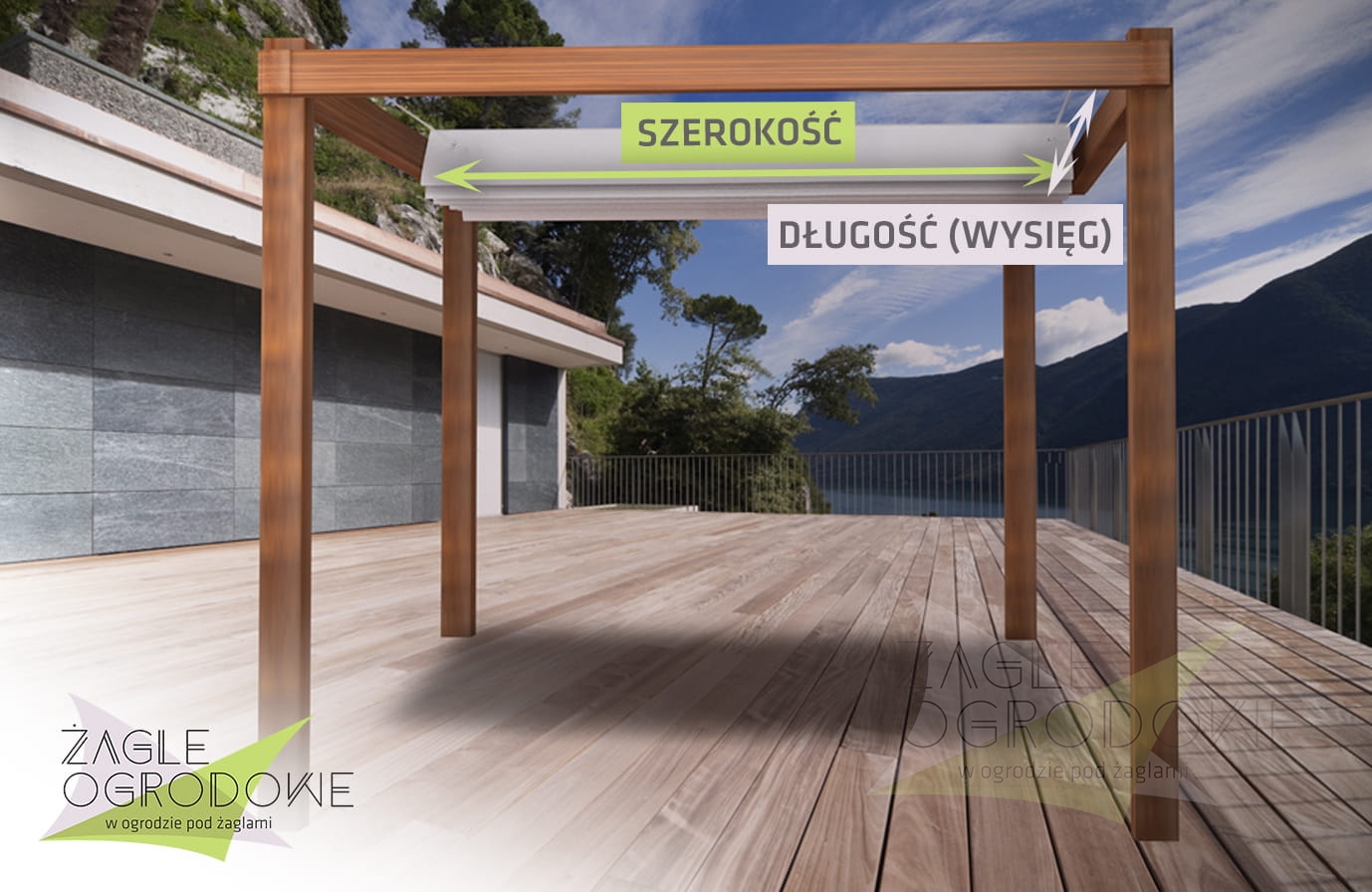 Houd rekening met een montagespeling van 3–5 cm in de breedte. Wij maken de zeilen op de volledige lengte van de constructie. Voorbeeld: bij een constructie van 3,05 x 3 m is de juiste zeilmaat 3,0 x 3 m.