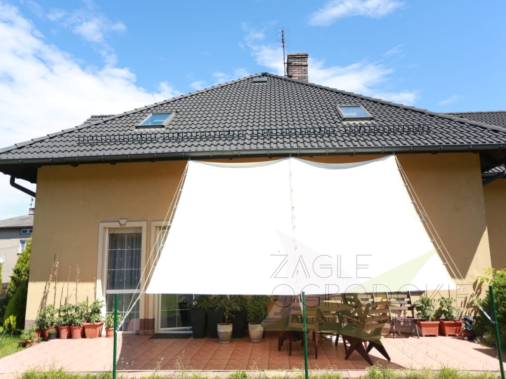 Aan de randen van het zeil bevinden zich montageogen waar een staalkabel doorheen wordt geleid. Deze kabel zorgt ervoor dat het zeil soepel in- en uitgeschoven może być. Montageaccessoires vindt u in onze sectie zeilmontage.