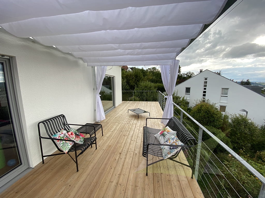 Het door ons aangeboden terrasgordijn op maat is een product dat praktisch nut combineert met een elegante uitstraling. Als producent van schaduwdoeken en tuingordijnen richten wij ons op hoge kwaliteit van afwerking en modern design. Hieronder presenteren wij de belangrijkste kenmerken die onze gordijnen onderscheiden: